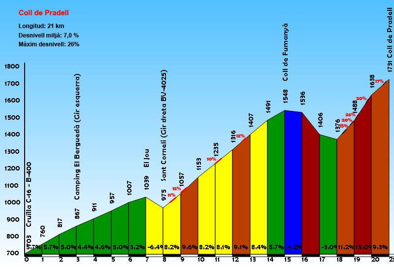 El coll de Fumanyà se me hizo aburrido y agobiante, el fisico me falló algo en Port del Comte pero en los demás me encontré bien y mejor aún en el temido Coll de Pradell.